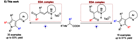 126. Yao, S., Zhao, X., Ban, X., Shao, T., Yin, Y., Hu, W., Jiang, Z., Visible light-driven direct access to imine-containing azaarene-substituted highly functionalized pyrroles. Org Chem Front 2023. DOI: 10.1039/d3qo01056b. https://doi.org/10.1039/d3qo01056b.