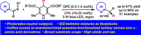 123. Song, X., Zhang, Y., Li, Y., Zhao, X., Yin, Y., Ban, X., Jiang, Z., Catalytic Asymmetric Synthesis of Azaarene-Functionalized Tertiary Amines and α-Amino Acid Derivatives from E/Z-Ketimine Mixtures via Enantioselective Radical Coupling. ACS Catal. 2023, 13 (9), 6396-6402. https://doi.org/10.1021/jacs.3c06694